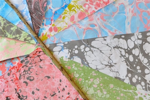 Gemma Davies discovered the beauty of traditional paper marbling over the past few years. She has trained to produce Turkish technique marbled paper and fabric in both New York and in the UK.