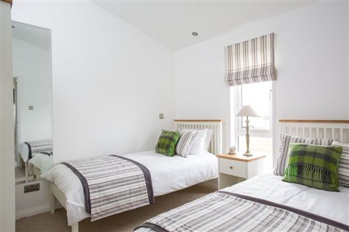 Arriving at the Tuscany, you are greeted by 2 serene sofas, a traditional cream electric wood burning stove sitting on a raw sandstone hearth and a wooden coffee table trunk to put your feet up with a 'night cap' after an invigorating day out exploring the landscape. An oak framed cushioned armchair is placed in the perfect position to get lost in a book, exposed to the views with the French doors wide open allowing the late afternoon light to pour in.