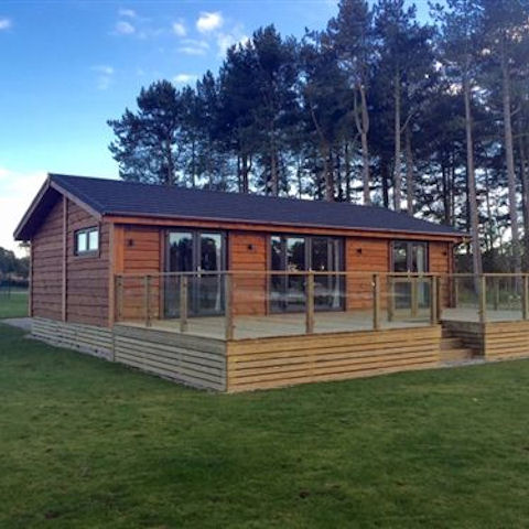 A luxurious second hand 2- double bedroom 36' x 22' handcrafted rustic timber lodge by Lissett Homes just down the road from Scampston in Pocklington.